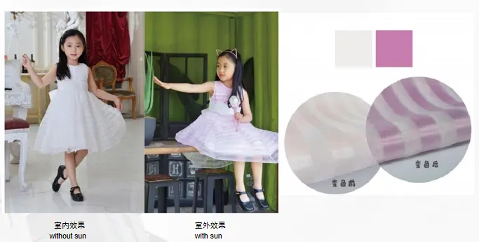 PhotoChromic Materialı, sun işığının (ultrabənövşəyi) tərəfindən dəyişdirildikdən sonra günəş işığının (ultrabənövşəyi), molekulyar quruluşun dəyişməsi nəticəsində (ultrabənövşəyi), molekulyar quruluşun dəyişməsi nəticəsində yaranan bir fotoqramdan (ultrabənövşəyi) istehsal edən bir fotokromik boyalardır. Günəş işığı (ultrabiolet) enerji itirildikdə, orijinal molekulyar quruluşuna qayıdır və orijinal rəngini bərpa edir. Xarakterik: